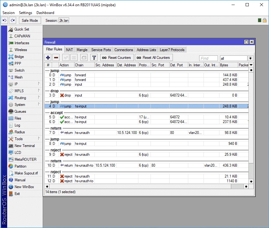 RouterOS ist ein fortschrittliches System mit zahlreichen Konfigurationsmöglichkeiten und integrierten Funktionen. WinBox hingegen, mit seiner benutzerfreundlichen Oberfläche, macht die Bedienung im erweiterten Modus besonders einfach und komfortabel und ermöglicht Nutzern die zuverlässigere Nutzung komplexer Funktionen. Dabei liegt der Fokus auf den am häufigsten verwendeten Parametern und Konfigurationen, wie z. B. der Konfiguration von kabelgebundenen und drahtlosen Schnittstellen, dem Sperren von Websites, dem Speichern und Laden vorheriger Sitzungen usw.